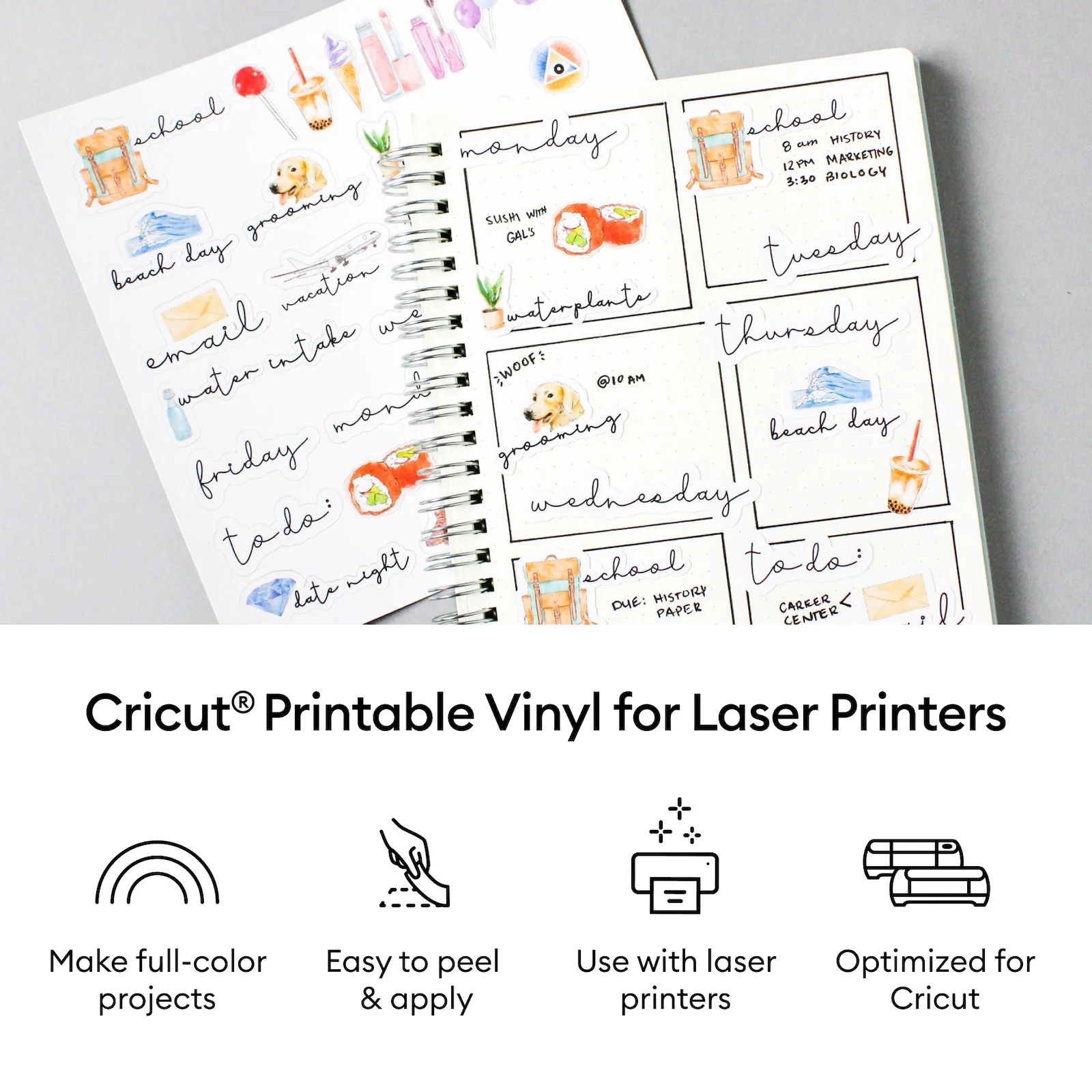 Make custom full-color projects that wow! Cricut Printable Vinyl for Laser Printers works with your home laser printer to print, then cut full-color designs. Just create your design and print it, then your Cricut cutting machine automatically recognizes & precision-cuts the design for amazing custom laptop stickers, decor, labels, and so much more. For best results, remove printer paper from printer tray, then load and print only one sheet of printable vinyl at a time. All Cricut materials are optimized for Cricut cutting machines with automatic cut settings in Design Space to ensure you have the best cutting experience.